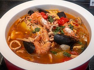 使用する食材に決まりはないが、魚介類は2種類以上を用いると味に深みが出る[1]。ポルトガルでは鱈(バカリャウ、bacalhau)がよく使われる。魚介類だけでカタプラーナが作られることもあるが、魚介類と肉類の両方を用いることもよくある[1][1]。ジャガイモは鍋にいっしょに入れることもあるが、別添えされることもある[2]。トマトが入ることもあるが、イタリア料理ほどには大量にトマトを用いることはない[1]。味付けは辛みの効いたピリピリ(piripiri)と呼ばれる唐辛子ソースがよく使用され、パクチーもよく使用される[1]。