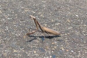 - 姿や生態がバッタに似ており、名称の由来と言われる「鎌を持つキリギリス」と言われることから「バッタに近い仲間」と言われがちだが、正確には網翅類であり、ゴキブリ及びシロアリとは近縁種の関係にある。