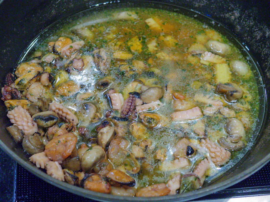 オリエンタルホテル東京ベイ(千葉県浦安市)の朝食ブッフェで提供されていたシーフードの黒アヒージョ