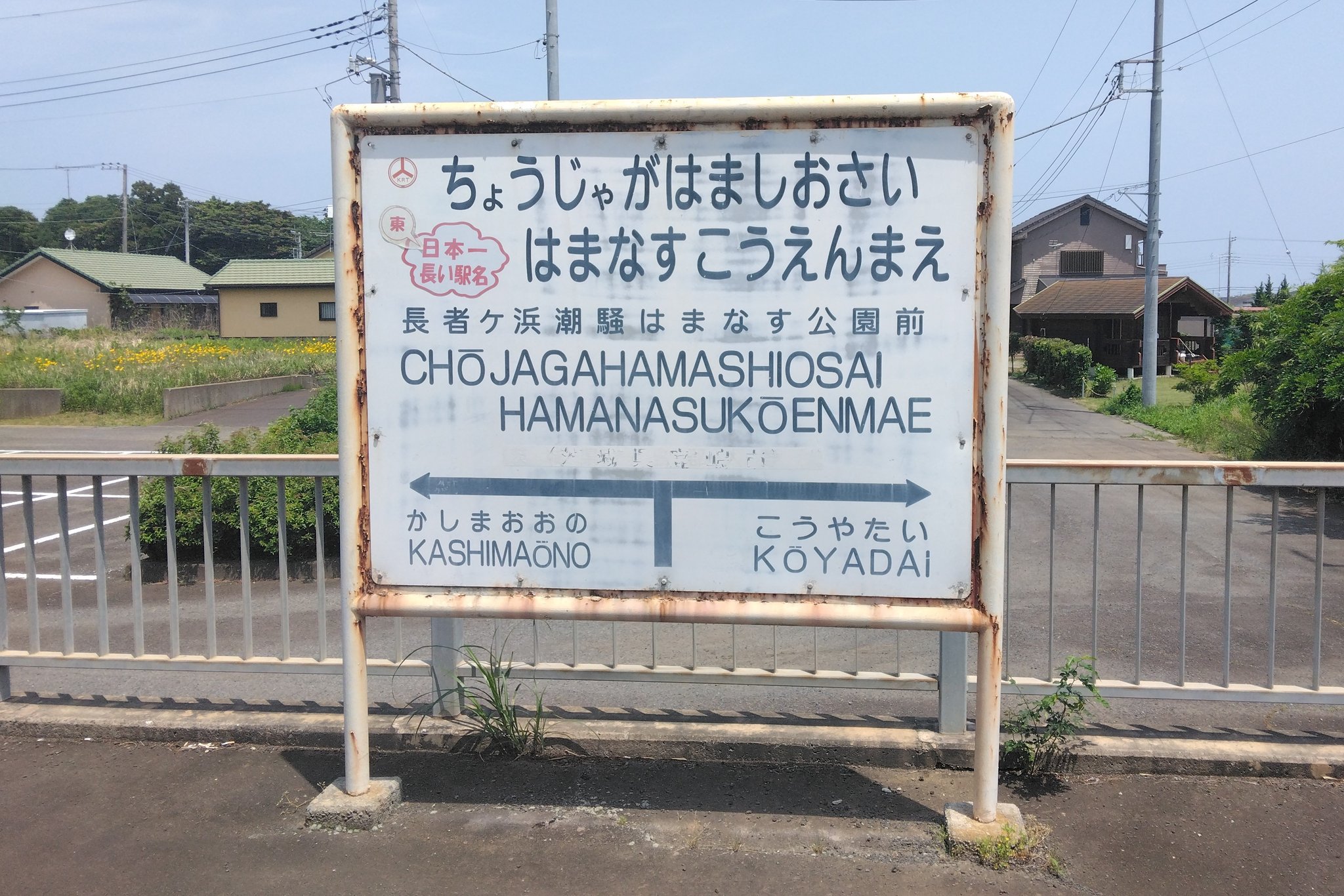 ファイル:Chōjagahama Shiosai Hamanasu Kōenmae 駅名標.jpg