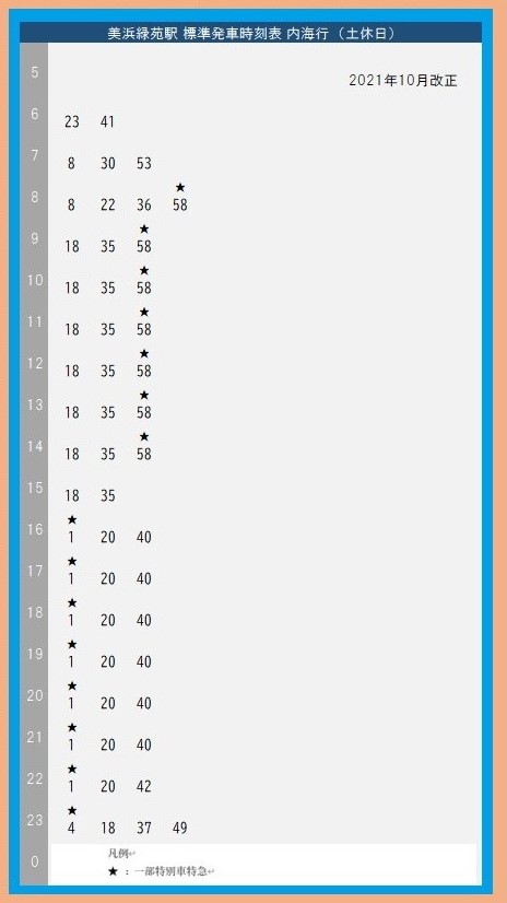 - 美浜緑苑駅内海行土休日時刻表
