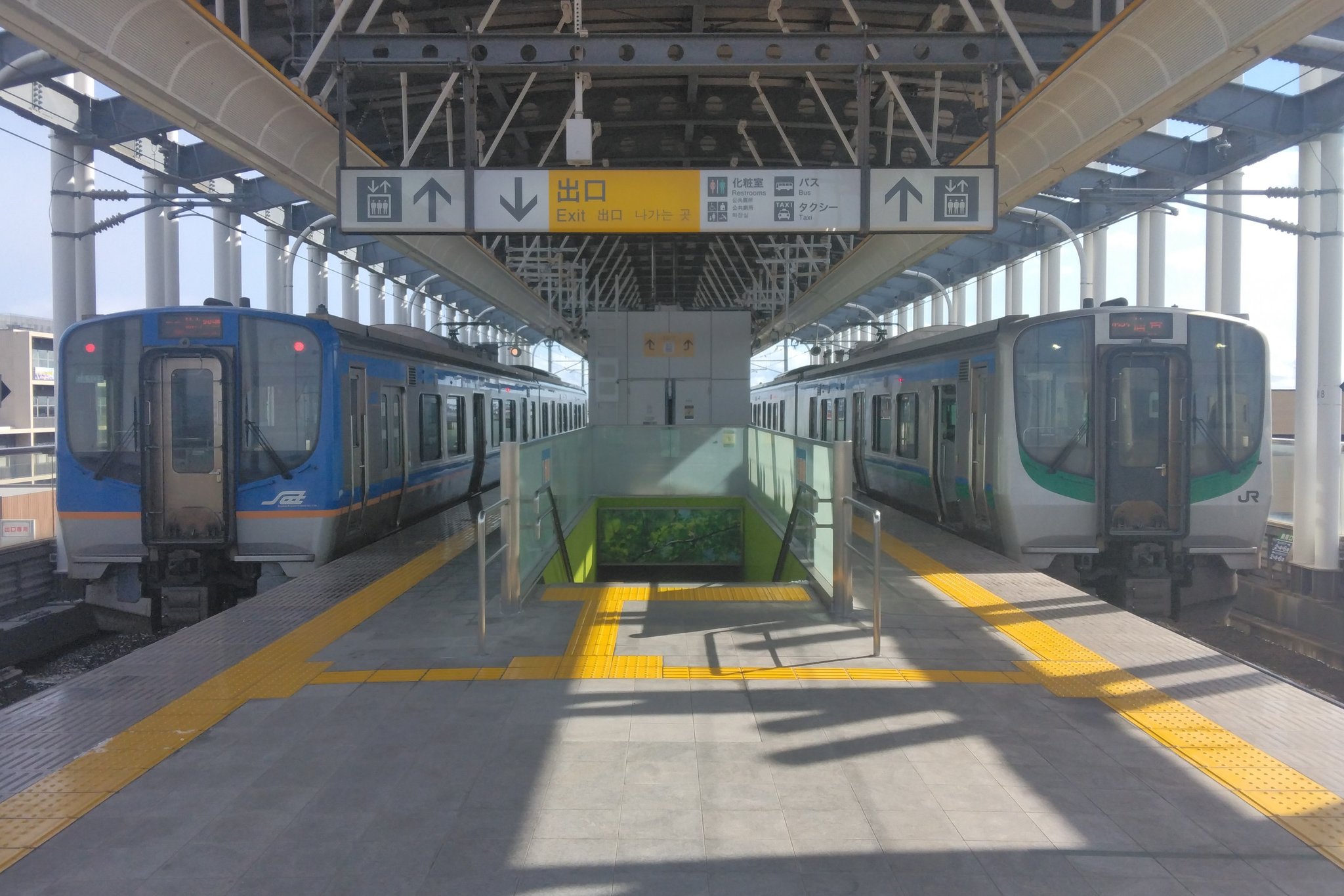 ファイル:Series SAT721 SA101 & Series E721 P-501 in Mitazono Station.jpg