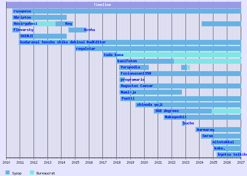 - 就任日/就任期間内の太字はコミュニティの信任投票によって得られた管理者の「正式な」就任日です。